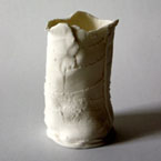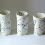 Paperporzellan, Transparentglasur, Engobe Kobalt Brenntemperatur 1250°C Maße: ø 7cm, h 15cm Preise: je 42,00 €