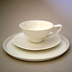 Porzellan, Transparentglasur Brenntemperatur bei 1250°C Maße: ø 22cm, h 1,5cm, ø 11,3cm, h 6cm Preise: 39,00 € und 52,00 €